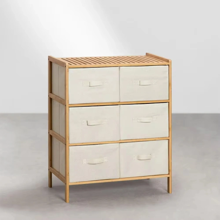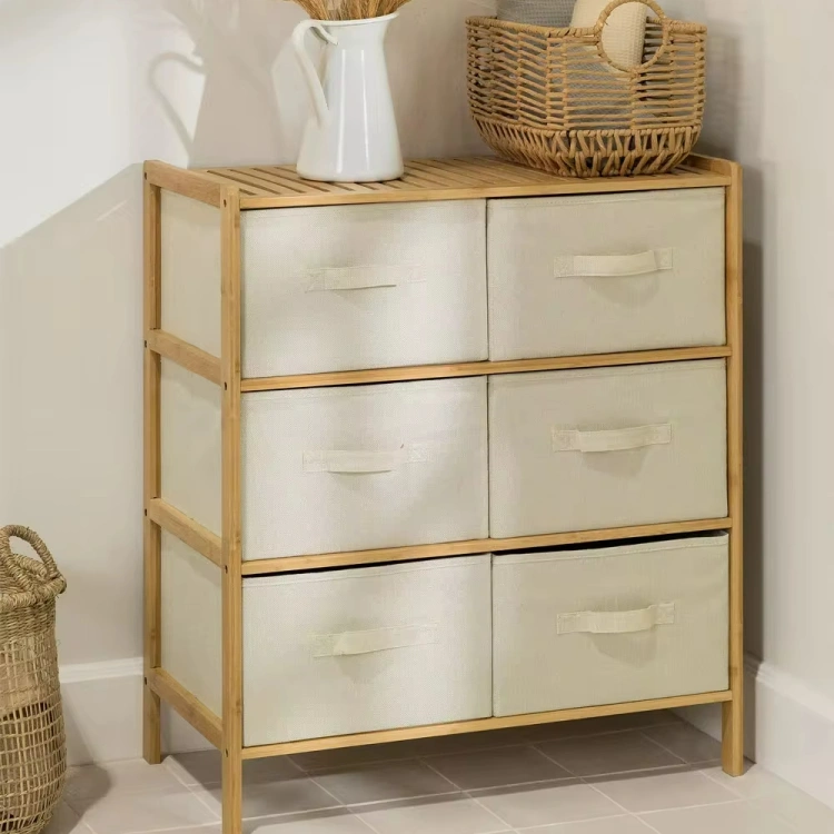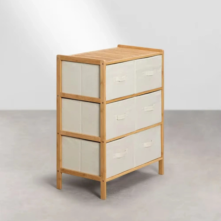 Product Name 3 Tiers Bamboo Cabinet With Fabric Bags