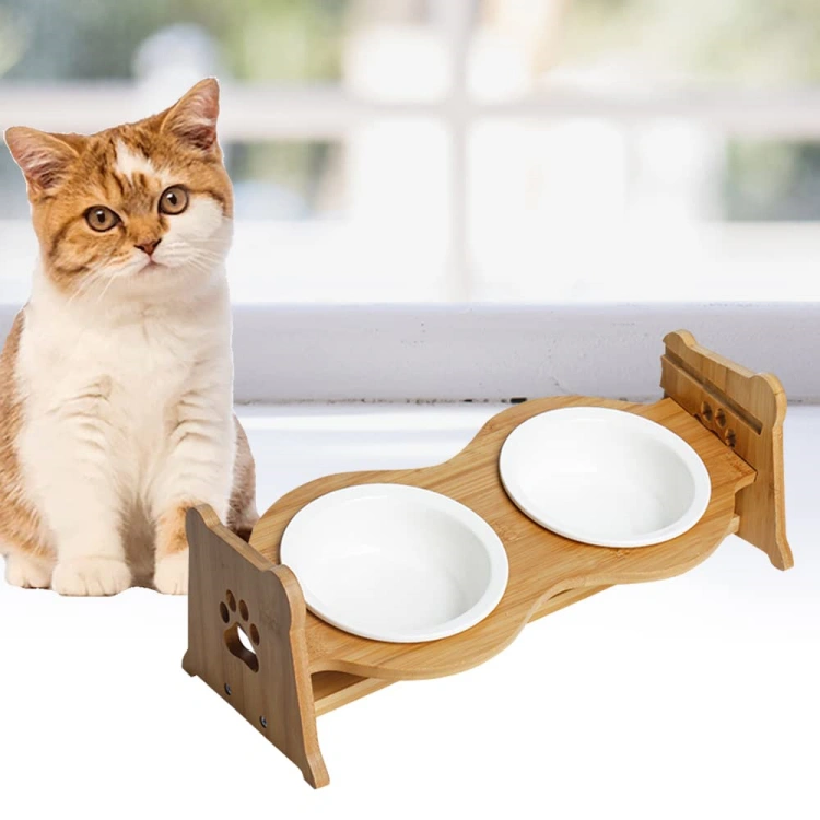 Type: Bamboo Elevated Pet Food Bowl Rack
