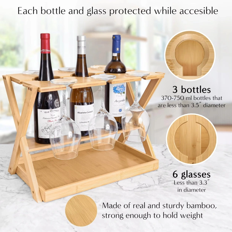 Space-Saving Design: The compact and foldable design allows you to efficiently store multiple wine bottles and glasses without occupying excessive space.