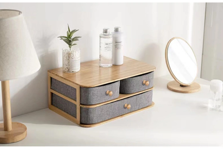 Description Bamboo dustproof multifunctional multi-layer household desktop cosmetics skin care products jewelry remote control storage box cabinet with drawer